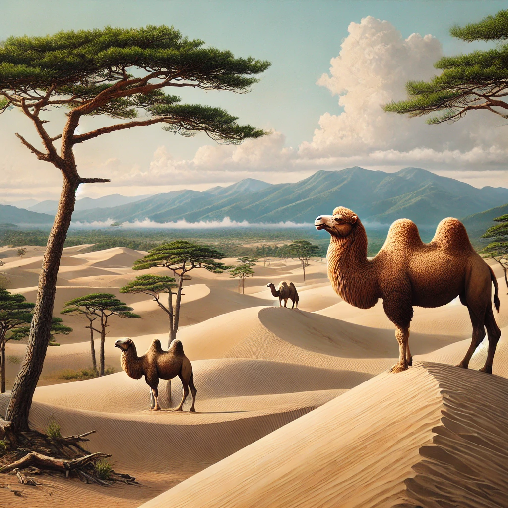 다른 해안사구에 비해 그 규모와 분위기가 독특하며, 겨울철 북서풍이 불어오는 시기에는 모래가 언덕을 덮어 더욱 장관을 이룹니다. 사막과 같은 분위기를 느낄 수 있는 이곳에는 몇 개의 낙타 조형물이 설치되어 있어 이색적인 사진을 남기기 좋습니다.